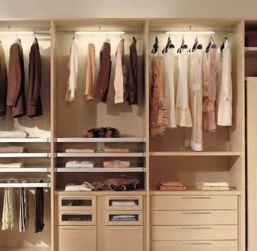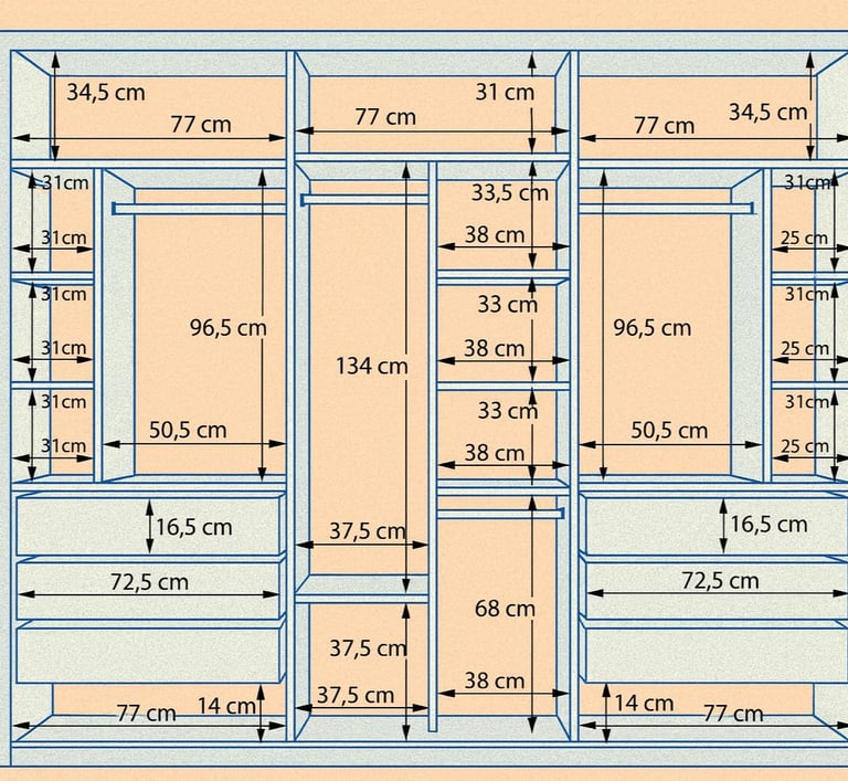 Hai buồng bên (Đối xứng): Thiết kế cân xứng hoàn hảo với khoang treo đồ ngắn (áo sơ mi, áo phông) cao 96.5cm và rộng 50.5cm.